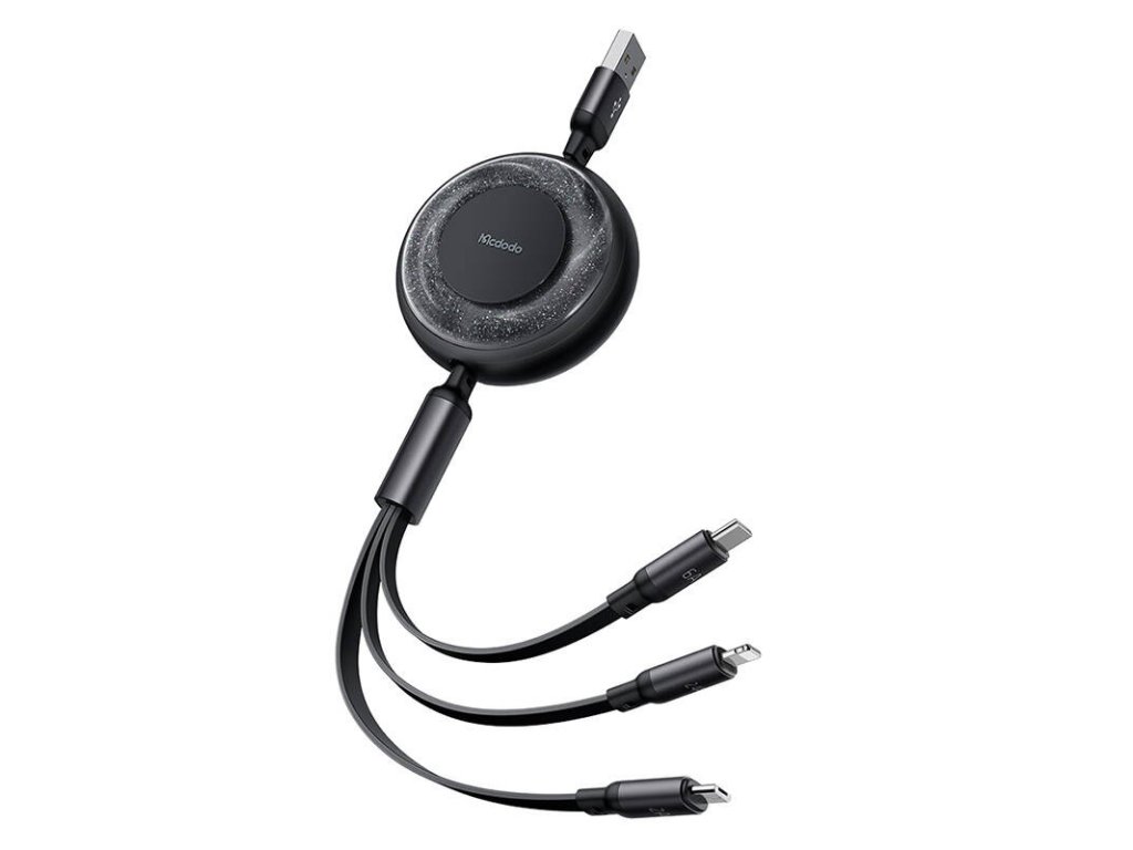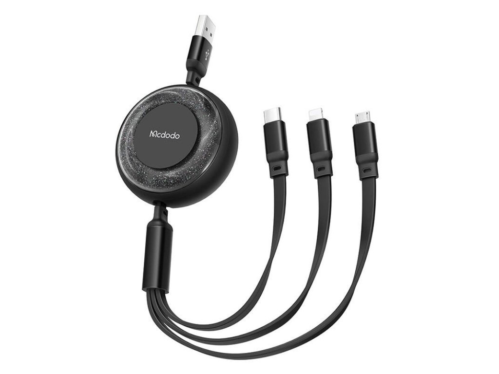 The Mcdodo CA-3730 cable offers three interfaces (USB-C, Lightning, Micro USB) and 5 levels of length adjustment. With a maximum current of 6A, power of 66W and support for fast charging, the cable allows you to charge three devices simultaneously, and transfer data at 480 Mbps. Made of durable materials, it ensures safety and reliability in daily use.