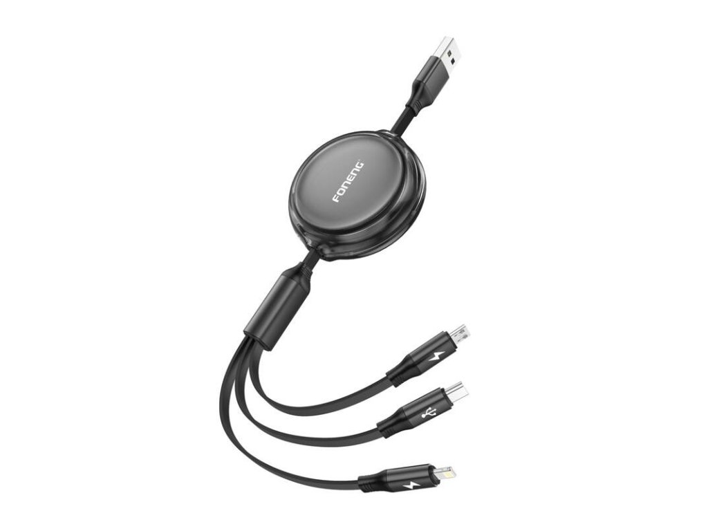 Kabel 3 v 1 Foneng X113 kombinuje funkčnost s moderním designem. Díky teleskopickému provedení s nastavením v několika úrovních se tento kabel stane nepostradatelným příslušenstvím pro nabíjení zařízení se systémem Android a Apple. Díky délce 1,1 metru a flexibilnímu materiálu je vhodný k použití v různých podmínkách a jeho jedinečný design z něj dělá kabel, který vyniká nad ostatními.