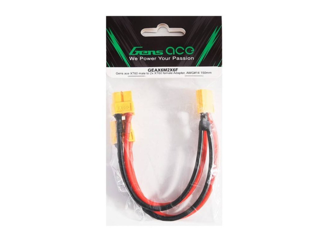 Gens ace XT60 samec na 2x XT60 samice Adaptér je vhodný pro dvoukanálovou RC nabíječku GensAce Imars AC200W/DC300Wx2 Smart Balance.