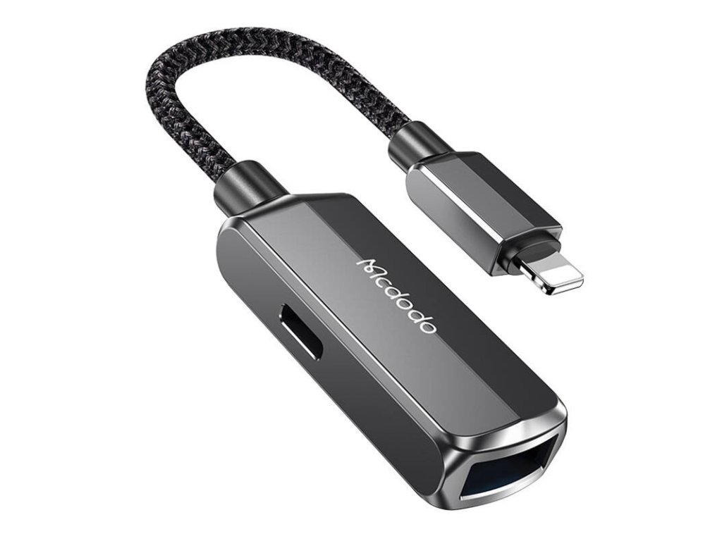 Enhance the capabilities of your iPhone or iPad with the Mcdodo OTG adapter. It allows you to connect various peripherals such as a hard drive, keyboard, mouse, card reader, and more to your selected device. It also enables simultaneous data transfer and charging with a current of up to 2.4A, thanks to its additional port. It stands out with its durable yet lightweight construction, making it convenient to carry with you at all times.