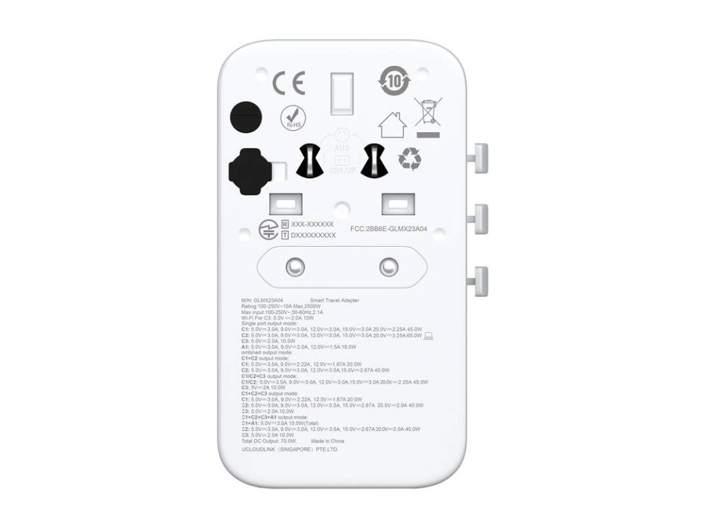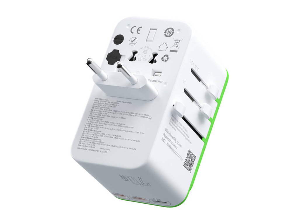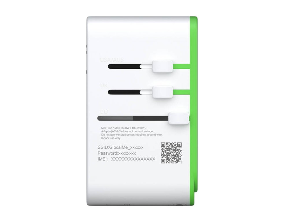 GlocalMe Roamplug s 4G Wi-Fi hotspotem je inovativní řešení, které kombinuje funkce přenosného routeru s univerzálním cestovním adaptérem. Díky podpoře globálních pásem 4G LTE a Wi-Fi 6 poskytuje stabilní přístup k internetu téměř kdekoli na světě. Zařízení také podporuje různé standardy rychlého nabíjení a jeho celkový maximální výstupní výkon dosahuje 70 W. Svůj telefon nebo bezdrátová sluchátka tak můžete nabít během okamžiku!