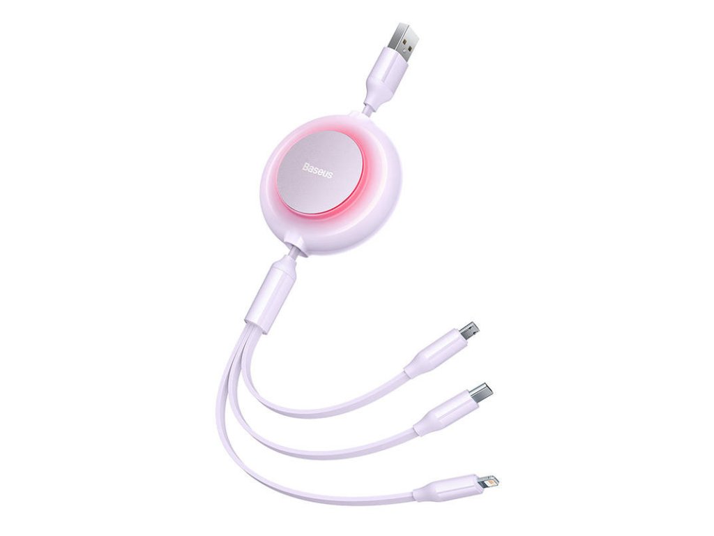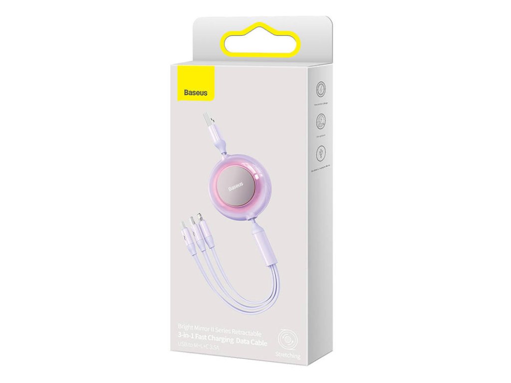 Baseus Bright Mirror 2, kabel 3 v 1 USB 3 v 1 pro micro USB / USB-C / Lightning 3,5A 1,1 m (fialový)