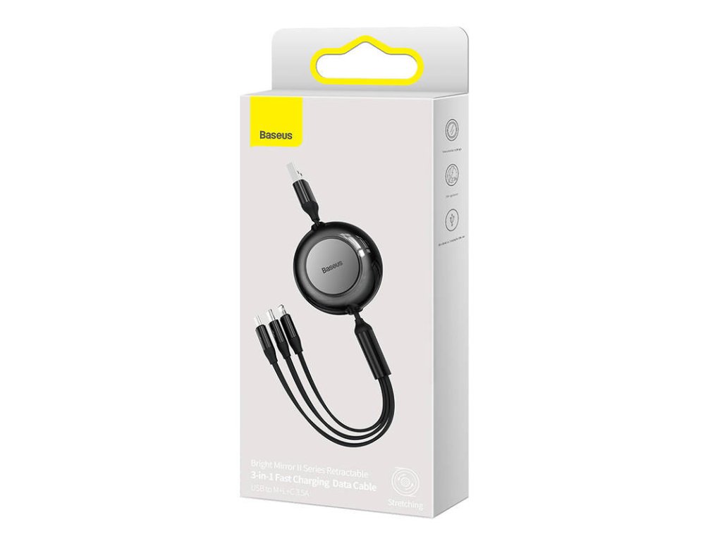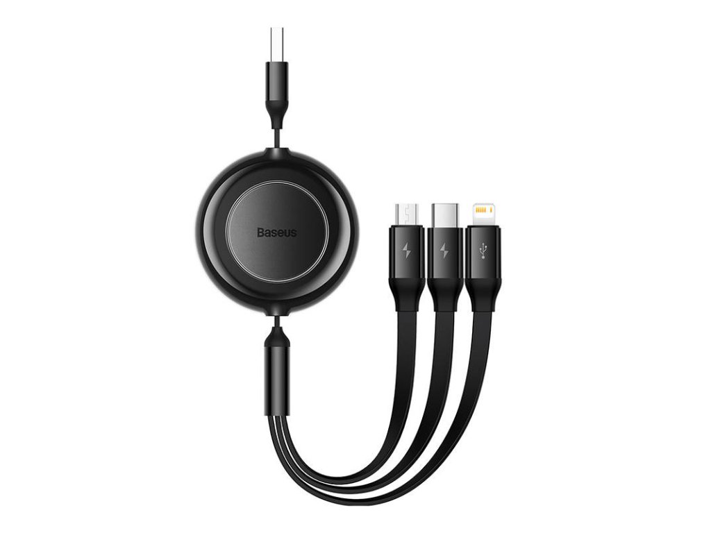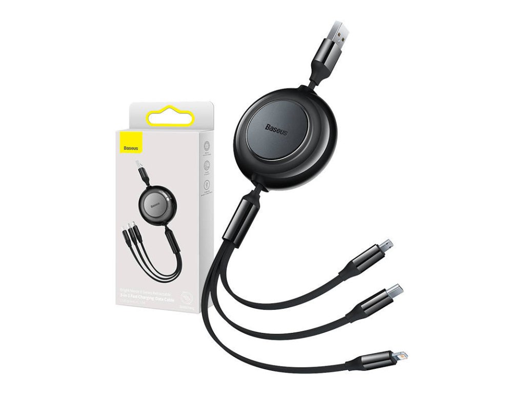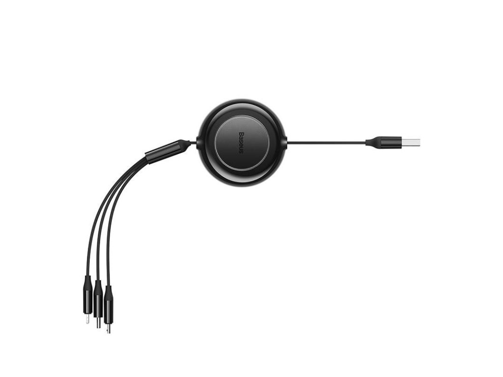 Tento praktický kabel od společnosti Baseus umožňuje rychlé a bezpečné nabíjení 3,5 A a přenos dat na konektoru Lightning rychlostí 480 Mb/s. S jeho pomocí nabijete zařízení od různých výrobců, protože kabel nabízí hned 3 výstupy: micro USB, Lightning a USB-C. Nabíjení tří zařízení najednou vám ušetří čas, navíc díky zatahovacímu provedení můžete délku kabelu přizpůsobit svým potřebám.
