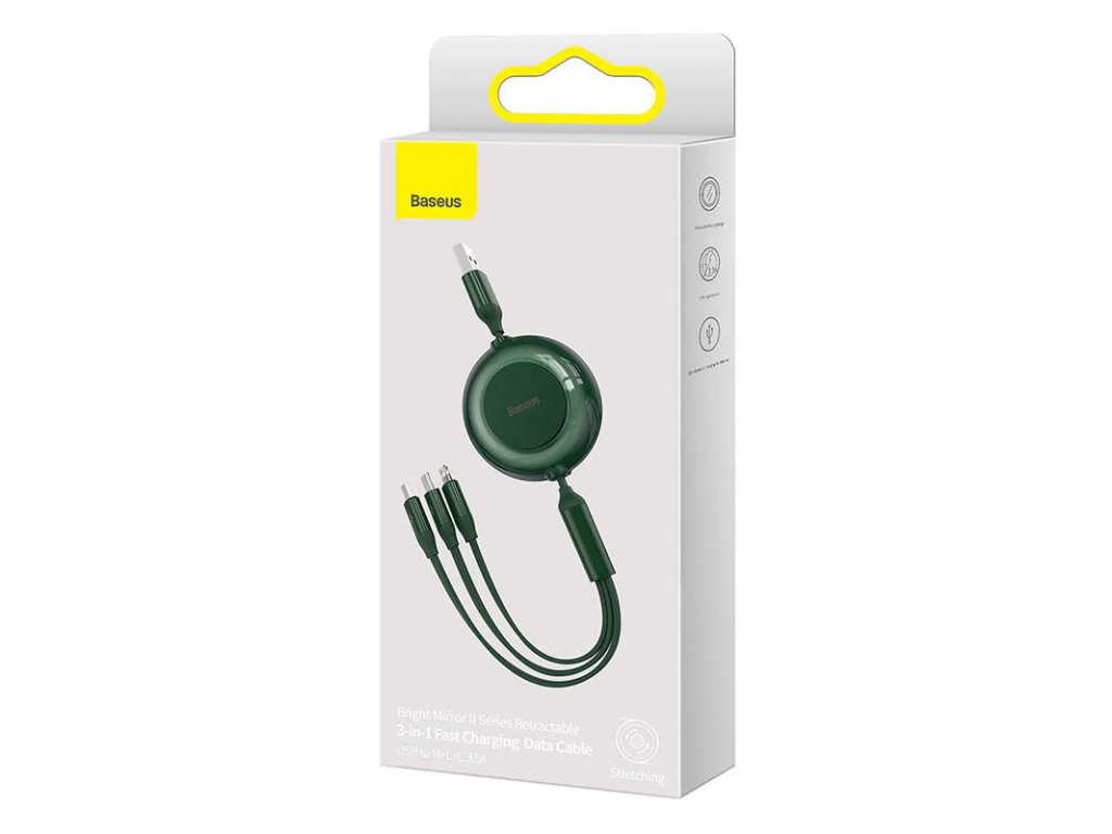 Baseus Bright Mirror 2, USB kabel 3 v 1 pro micro USB / USB-C / Lightning 3,5A 1,1 m (zelený)