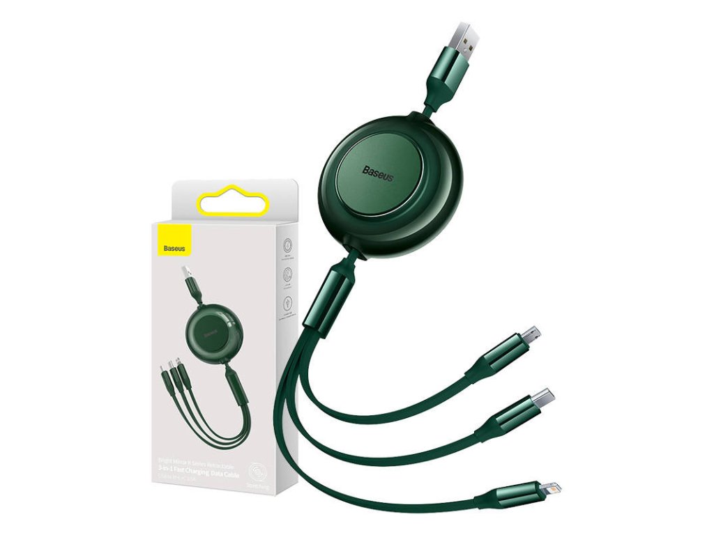 Tento praktický kabel od společnosti Baseus umožňuje rychlé a bezpečné nabíjení 3,5 A a přenos dat na konektoru Lightning rychlostí 480 Mb/s. S jeho pomocí nabijete zařízení od různých výrobců, protože kabel nabízí hned 3 výstupy: micro USB, Lightning a USB-C. Nabíjení tří zařízení najednou vám ušetří čas, navíc díky zatahovacímu provedení můžete délku kabelu přizpůsobit svým potřebám.