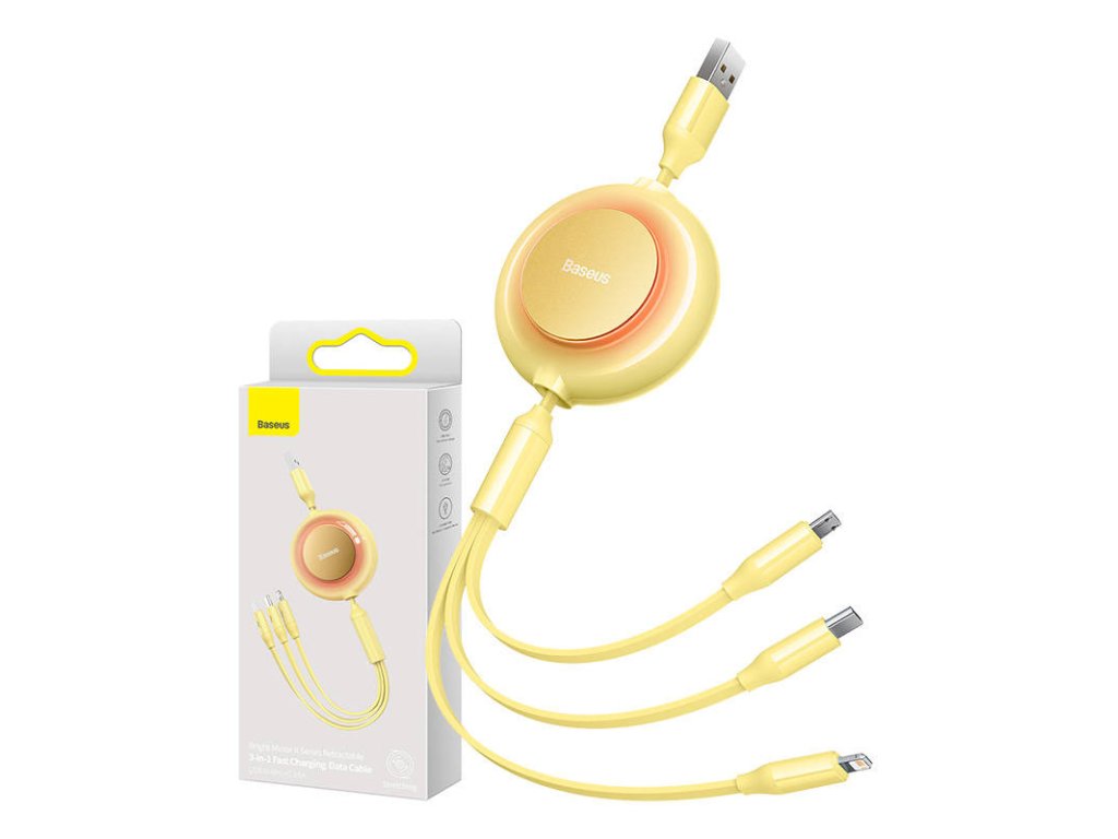 Baseus Bright Mirror 2, USB kabel 3 v 1 pro micro USB / USB-C / Lightning 3,5A 1,1 m (žlutý)