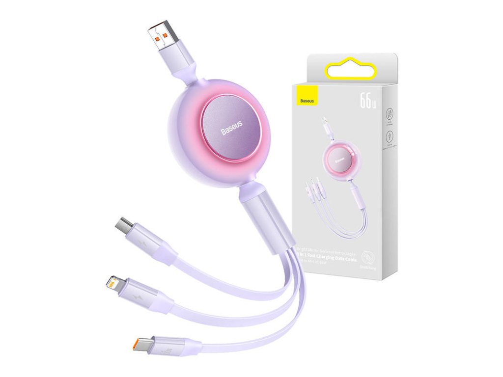 Baseus Bright Mirror 3, USB kabel 3 v 1 pro micro USB / USB-C / Lightning 66W / 2A 1,1 m (fialový)