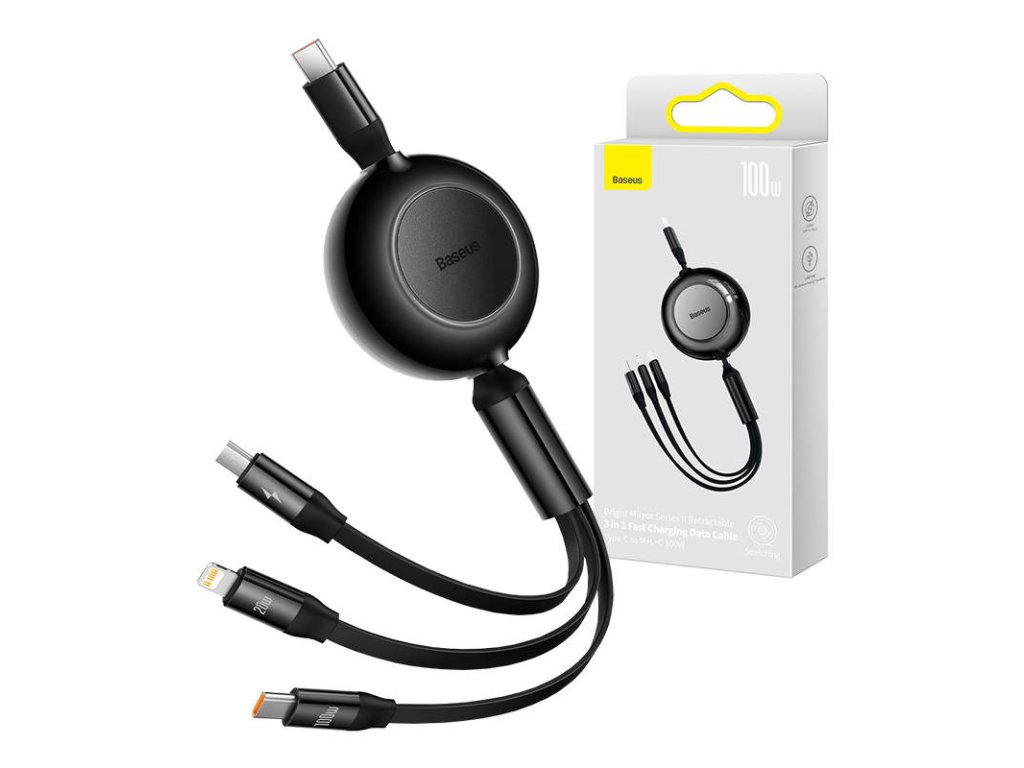 S kabelem USB-C 3 v 1 Baseus Bright Mirror 4 získáte přístup k rychlému nabíjení notebooků, zařízení Apple a dalších zařízení. Kabel také umožňuje přenos dat (Lightning) rychlostí až 480 Mb/s. Zatahovací kompaktní provedení zaručuje snadné skladování a přepravu a použitá řešení chrání připojená zařízení.