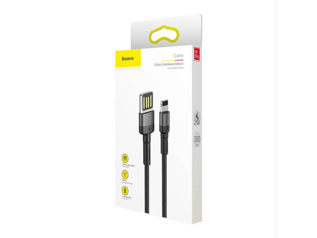 Délka kabelu Baseus je 100 cm a maximální výstupní proud je 2,4 A. Kabel poskytuje komfortní používání a vysokou funkčnost. Byl vyroben z vysoce kvalitních materiálů, které zajišťují dlouhou životnost výrobku. Je vyroben z nylonu, takže se nezamotává. Kabel umožňuje nabíjení a přenos souborů mezi zařízeními vybavenými vstupem USB a zařízeními Apple vybavenými vstupem Lightning. Hliníkové koncovky, opletení a zesílený gumový spoj zajišťují dlouhou životnost.