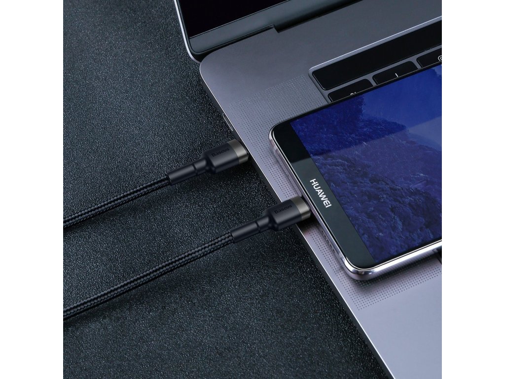 Kabel Cafule umožňuje rychlé nabíjení a přenos dat. Díky technologiím Power Delivery 2.0 a Quick Charge 3.0 dokáže kabel velmi rychle nabíjet zařízení vybavená těmito technologiemi, např. notebooky, tablety a smartphony. Použitá zástrčka USB-C umožňuje připojit prakticky všechna zařízení s portem USB typu C. Použití hliníkových koncovek a nylonového opletení zajišťuje dlouhou životnost příslušenství.
