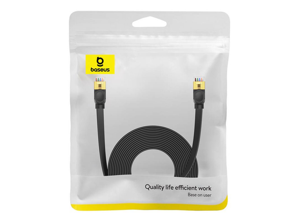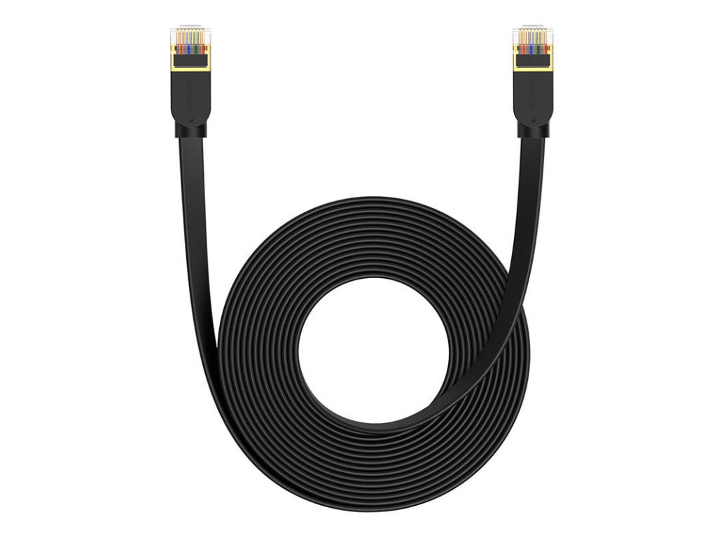Baseus Ethernetový plochý síťový kabel RJ45, gigabitový, Cat.7, 8 m (černý)
