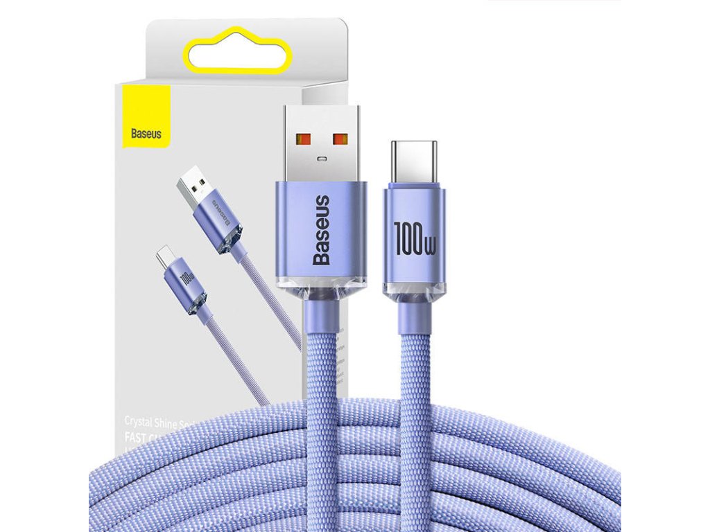 Baseus Crystal Shine kabel USB na USB-C, 100 W, 2 m (fialový)