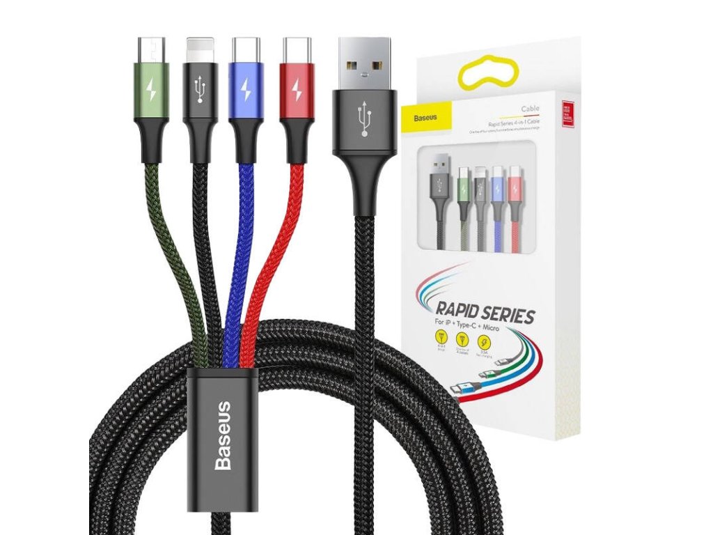 Baseus Fast USB kabel 4v1 2xUSB-C / Lightning / Micro 3,5A 1,2m - černý