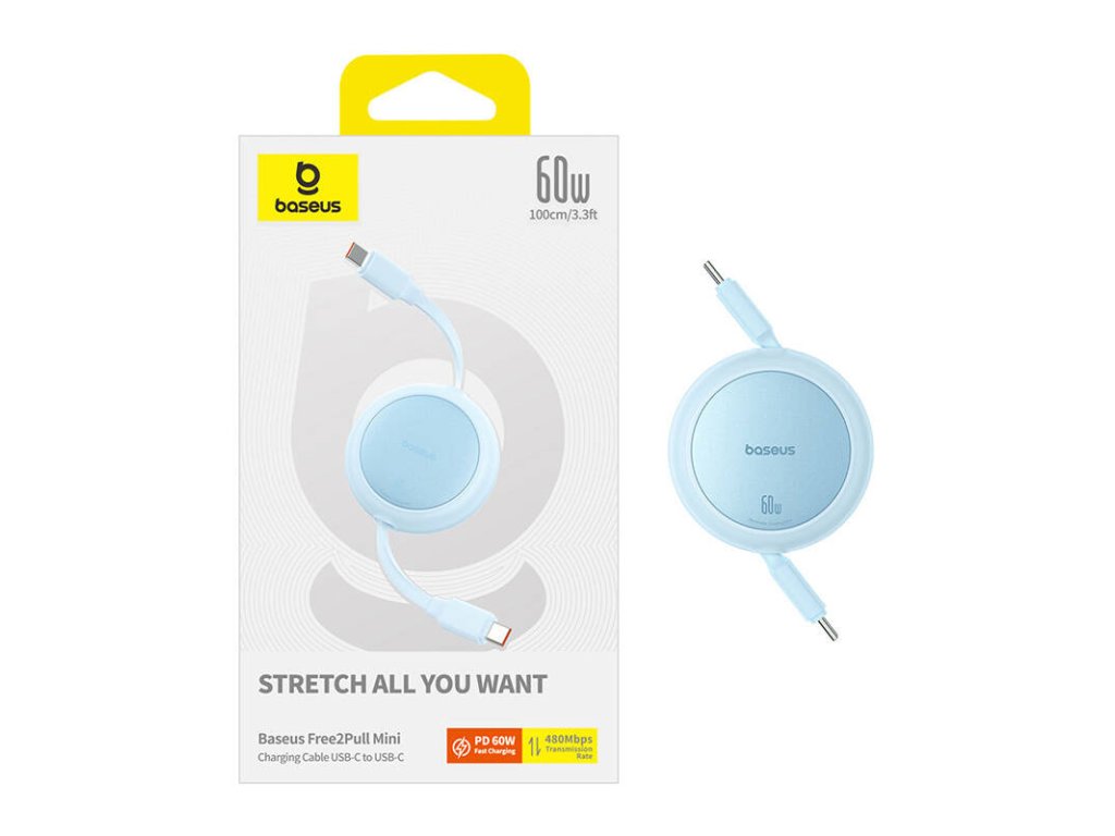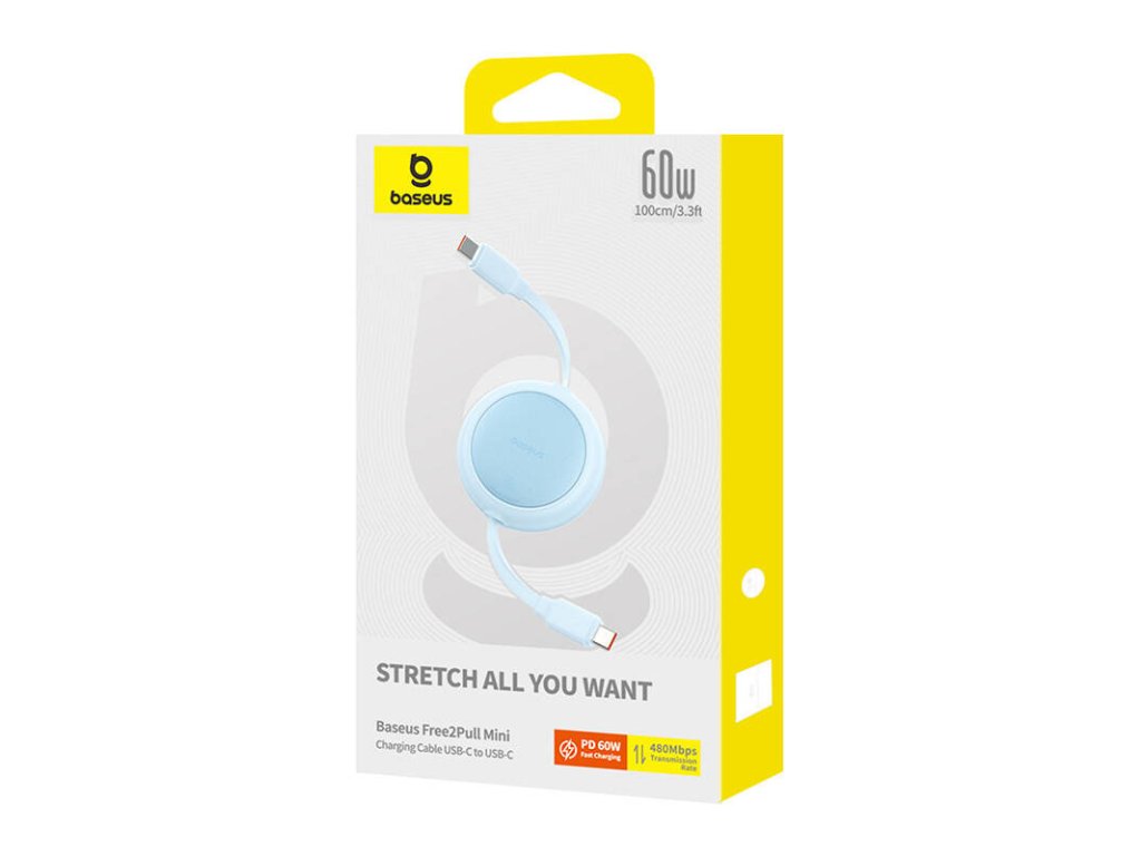 Baseus Free2Pull Mini USB-C na USB-C 60W USB kabel, 1 m (modrý)
