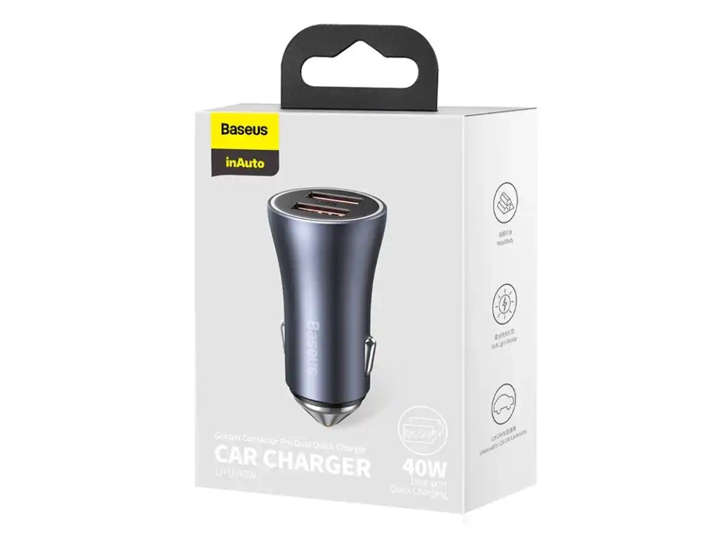 Baseus Golden Contactor Pro nabíječka do auta, 2x USB, 40W (šedá)
