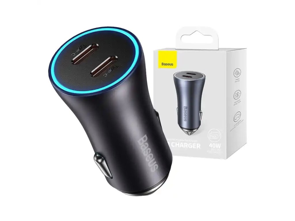 Baseus Golden Contactor Pro nabíječka do auta, 2x USB-C, 40 W (tmavě šedá)