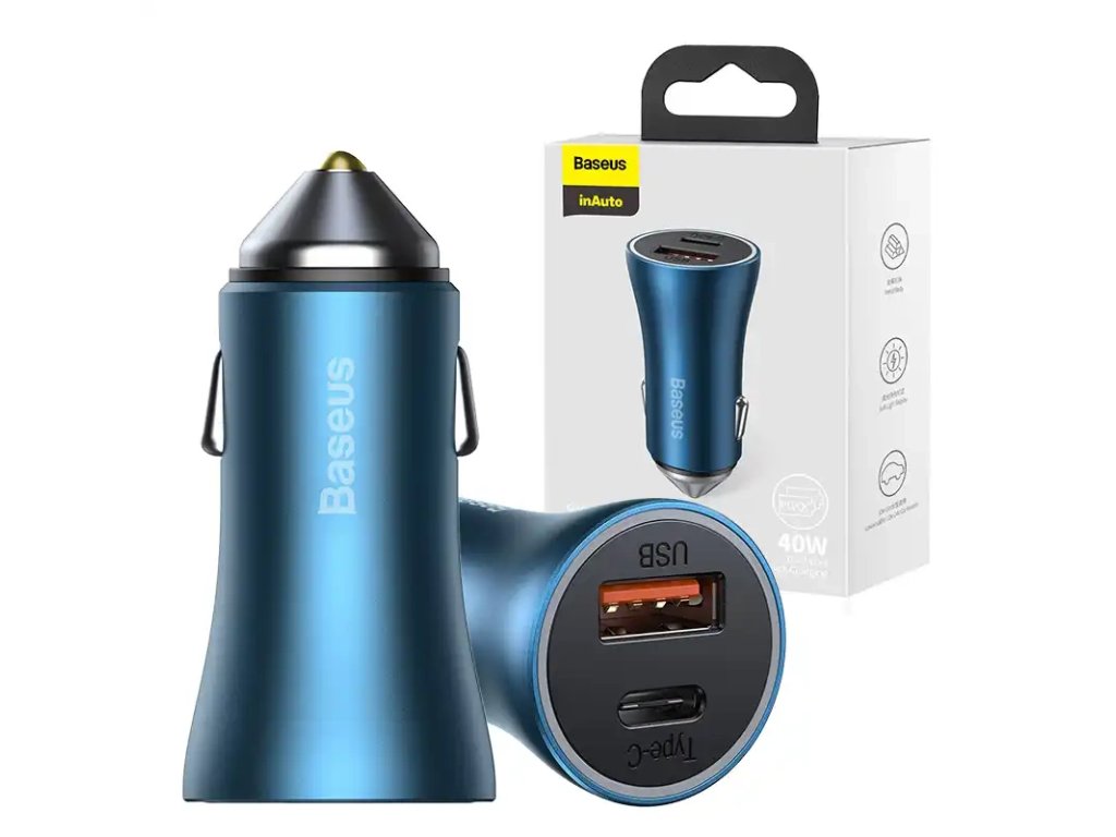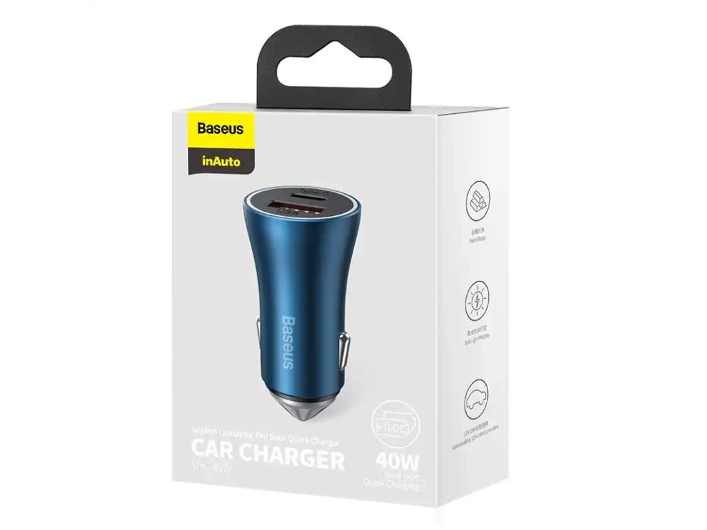 Baseus Golden Contactor Pro nabíječka do auta, USB USB-C, QC4.0 , PD, SCP, 40W (modrá)