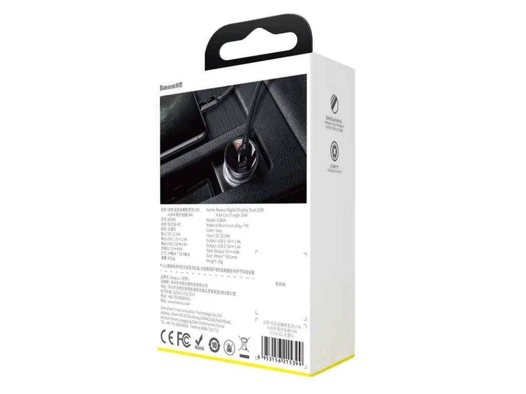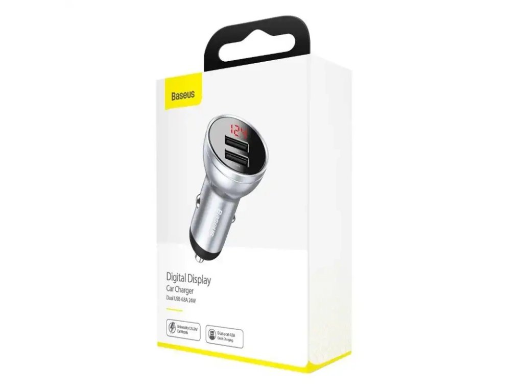 Baseus nabíječka do auta 2x USB, 4,8A, 24W (stříbrná)