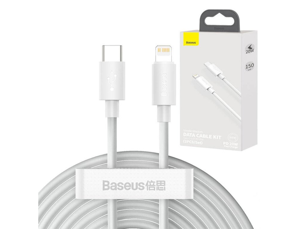 Baseus Simple Wisdom Data Cable Kit USB-C to Lightning PD 20W (2PCS/Set) 1.5m White