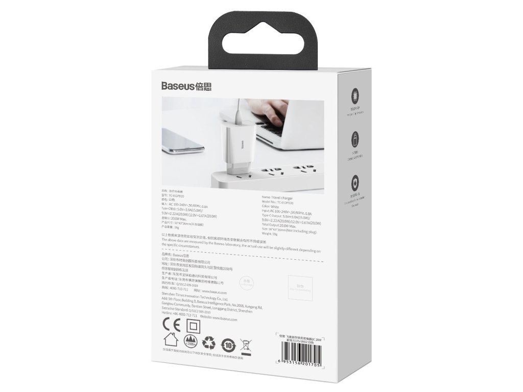 Baseus Speed Mini Quick Charger, USB-C, PD, 3A, 20W (bílá)
