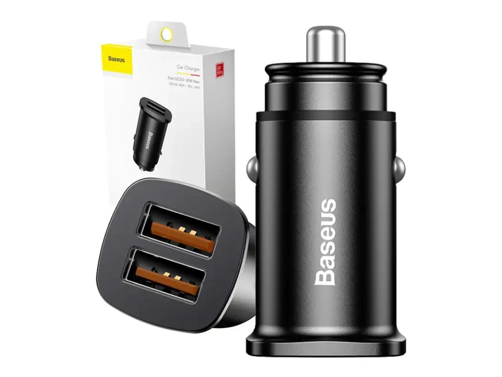 Baseus Square 2xUSB QC3.0 5A 30W nabíječka do auta (černá).