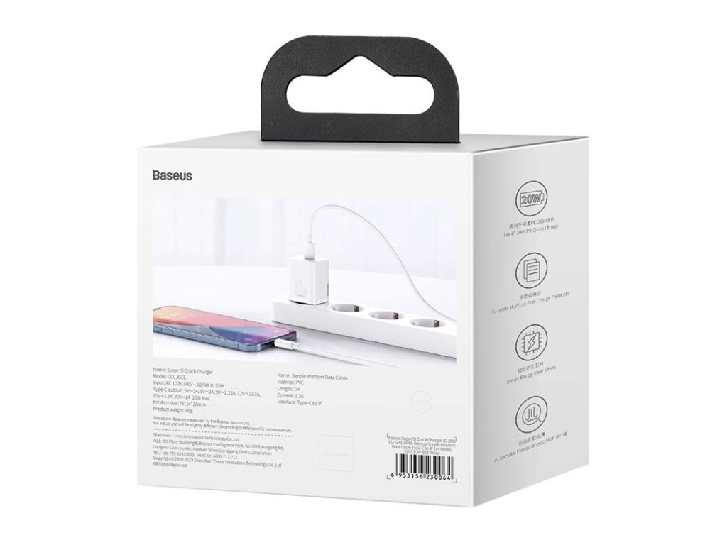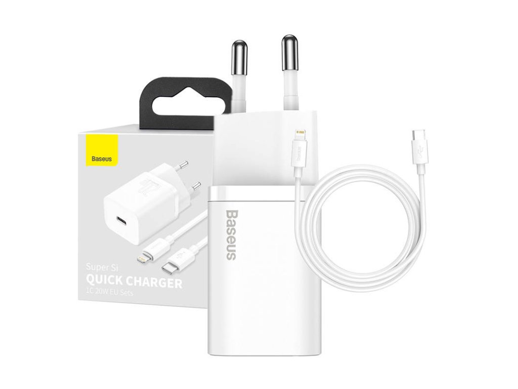 Baseus Super Si Quick Charger 1C 20W s kabelem USB-C pro Lightning 1m (bílá)