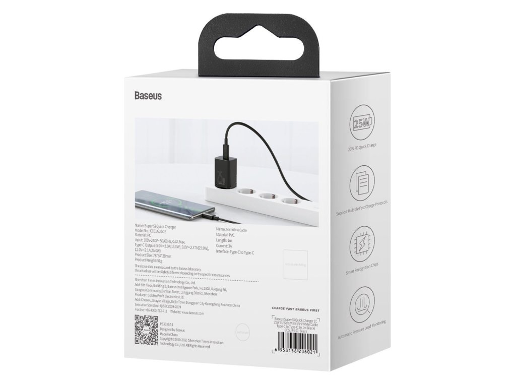 Baseus Super Si Quick Charger 1C 25W s kabelem USB-C pro USB-C 1m (černá)