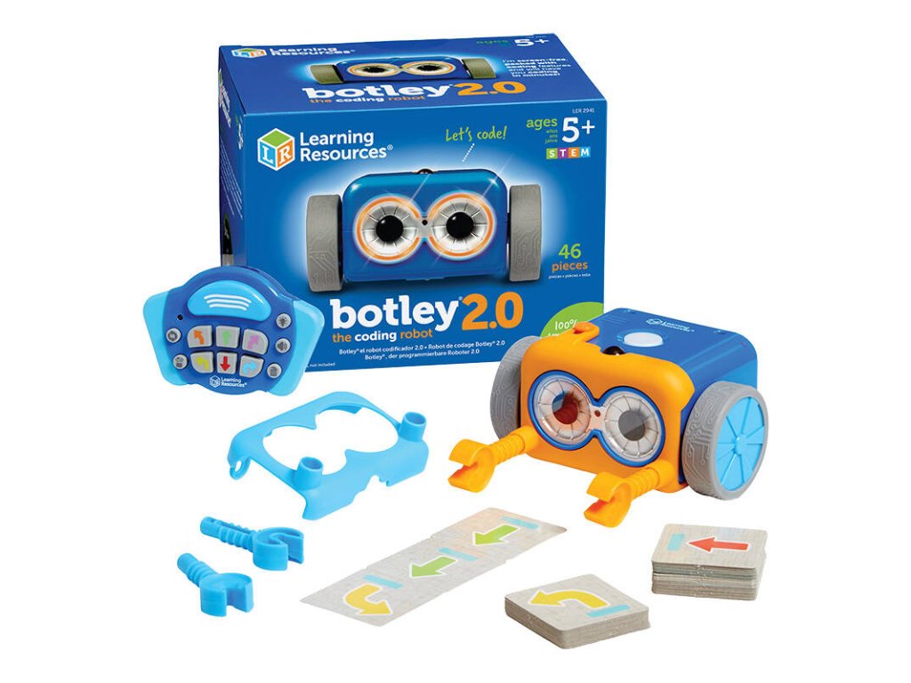 Botley 2.0 se dokáže pohybovat z místa na místo, přemisťovat předměty a mnoho dalšího. Jeho programování usnadňuje přiložený dálkový ovladač - s jeho pomocí dítě snadno nakóduje až 150 kroků v 6 směrech. Nechybí ani možnost vytváření různých funkcí, cyklů a podmíněných úloh. Robot je také schopen detekovat předměty a má zabudovaný světelný senzor - ve tmě mu začnou svítit oči. Je také možné zvolit barvu osvětlení a naprogramovat propracované sekvence světelných efektů. To ale není všechno! Botley 2.0 dokáže rozpoznat černé čáry a pohybovat se po nich - k vytvoření trasy pro něj stačí bílý list papíru a tlustá fixa. Navíc jsou k dispozici tajné kódy, po jejichž zadání robot provádí různé triky - nechte své dítě všechny vyzkoušet!