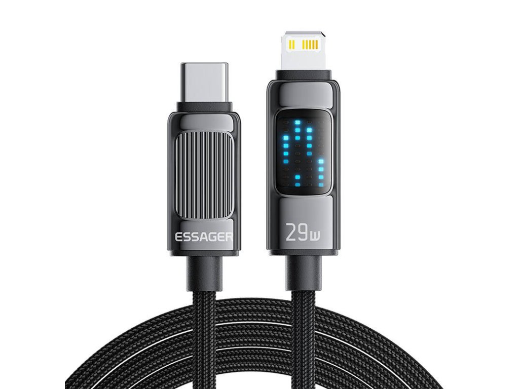 Looking for a durable cable to charge your iPhone? The Essager cable is the answer to your needs! It offers up to 29W of power, and with Power Delivery support, charging won't take too long. It features a small display that will not only keep you in control of the charging process, but also make it easy to locate the cable in the dark! The cable will also work well for transferring files between devices at speeds of up to 480 Mbps.