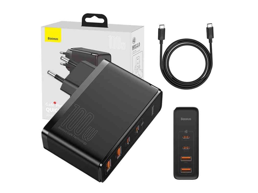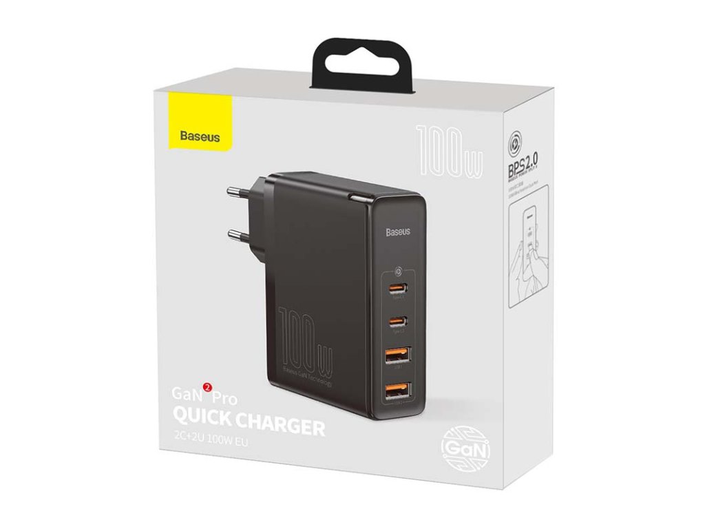 Baseus GaN2 Pro Quick (2xUSB-A/2xUSB-C) adaptér (100W) - Černá