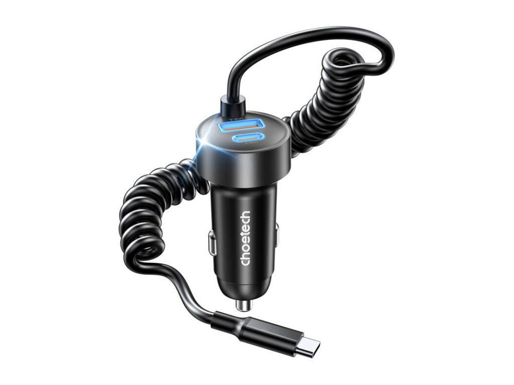 Choetech TC0030 65W dvouportová autonabíječka 1C1A s 1,2m pružinovým kabelem