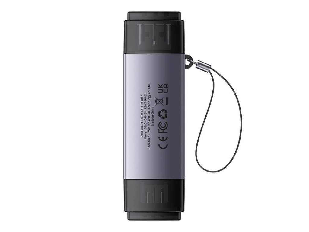 Čtečka paměťových karet SD/TF řady Baseus Lite, USB + USB-C (šedá)