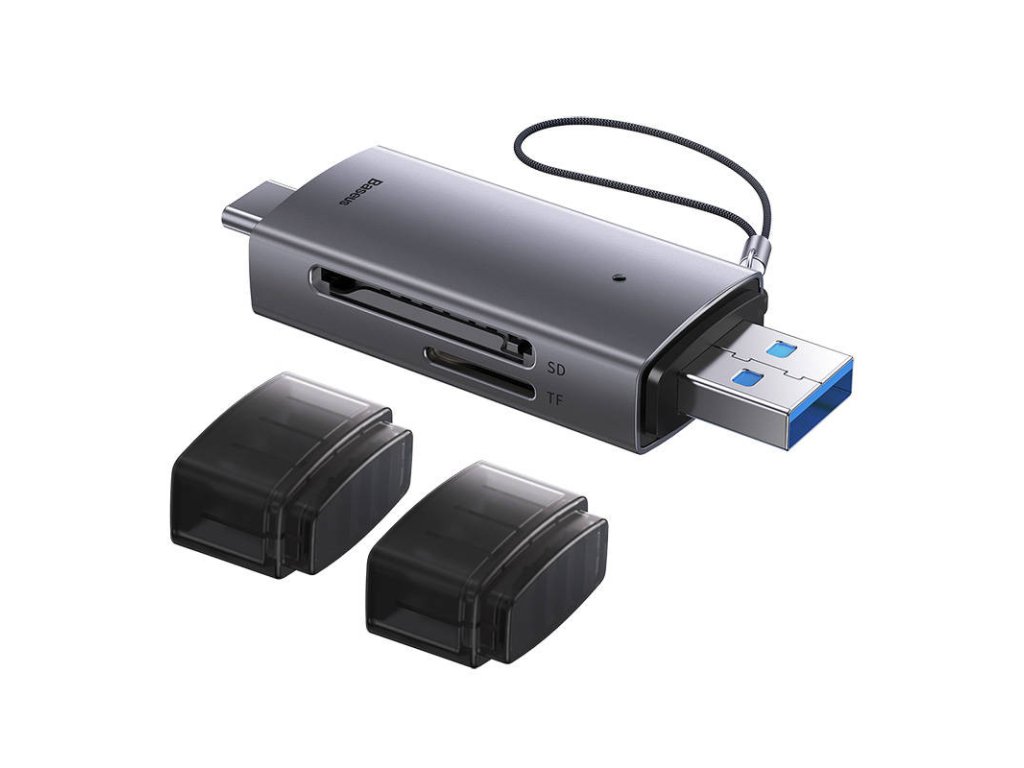 Baseus Čtečka paměťových karet SD/TF, USB + USB-C (šedá)