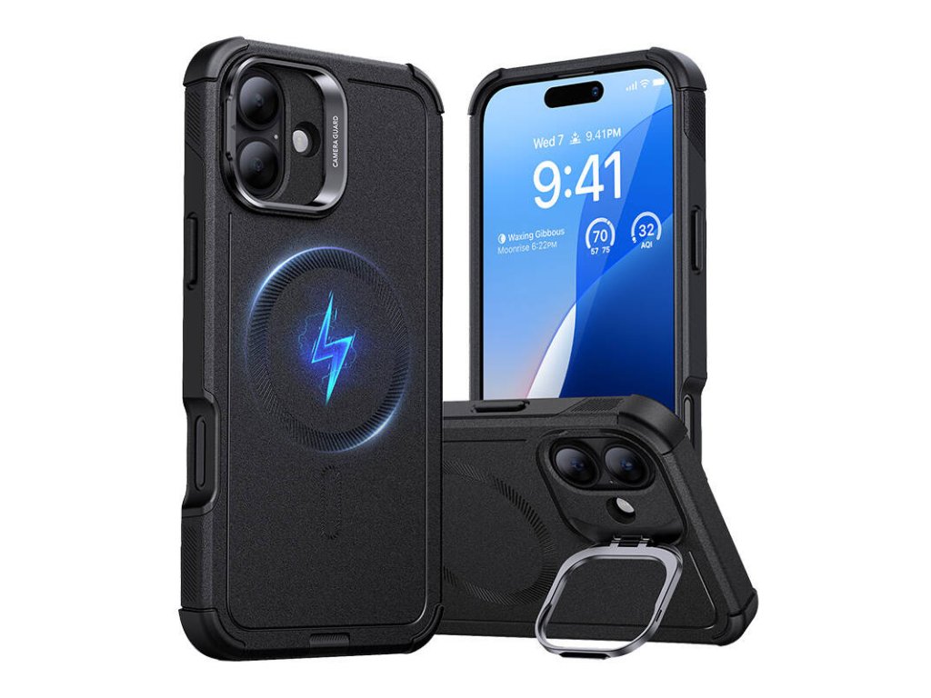 Compatible with the iPhone 16, ESR's Cyber Tough (HaloLock) case provides reliable protection in accordance with military standard MIL-STD-810H 516.8. The accessory can withstand drops from heights of up to 7 meters. The product also offers a stand and compatibility with magnetic accessories.
