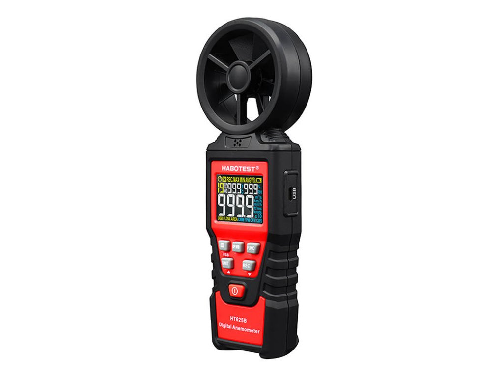 HT625B je funkční a kompaktní anemometr s vysokou citlivostí. Je vybaven rotorem s 8 lopatkami a barevným HD displejem. K jeho napájení jsou zapotřebí 3 baterie AAA 1,5 V. Umožňuje provádět měření v různých jednotkách. Můžete jej také připojit k počítači pomocí kabelu USB pro správu dat v reálném čase.