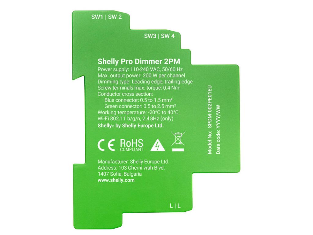 Shelly Pro Dimmer 2 je moderní 2-kanálový stmívač na lištu DIN určený pro inteligentní správu osvětlení v domácnosti nebo kanceláři. Zařízení může pracovat samostatně v místní síti Wi-Fi nebo může být ovládáno pomocí cloudových služeb domácí automatizace. Integrované webové rozhraní navíc umožňuje vzdálený přístup, ovládání a sledování stavu stmívače odkudkoli na světě, kde je k dispozici připojení k internetu. Pro správnou funkci výrobku není zapotřebí žádný další rozbočovač - lze jej ovládat lokálně nebo vzdáleně, prostřednictvím systému Shelly Smart Control nebo systému třetí strany.