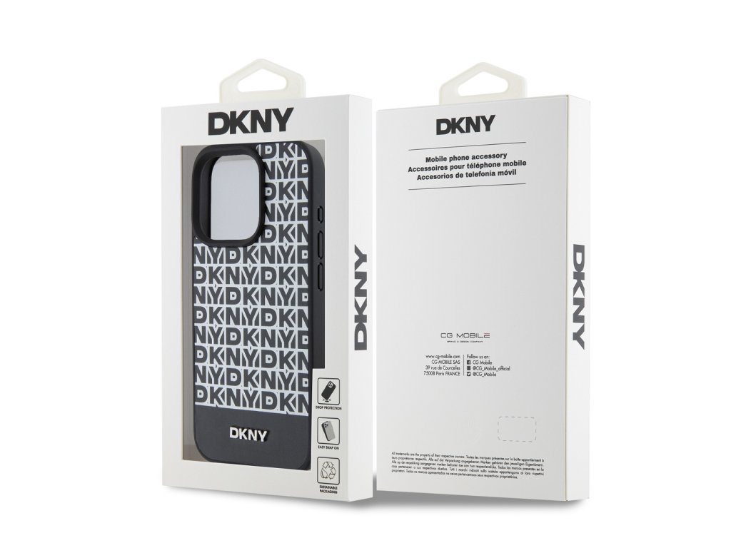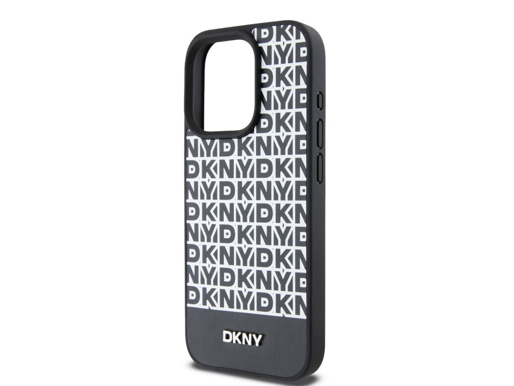 DKNY PU Leather Repeat Pattern Bottom Stripe MagSafe se skládá z opakovaného loga značky "DKNY", což vytváří elegantní grafický efekt.