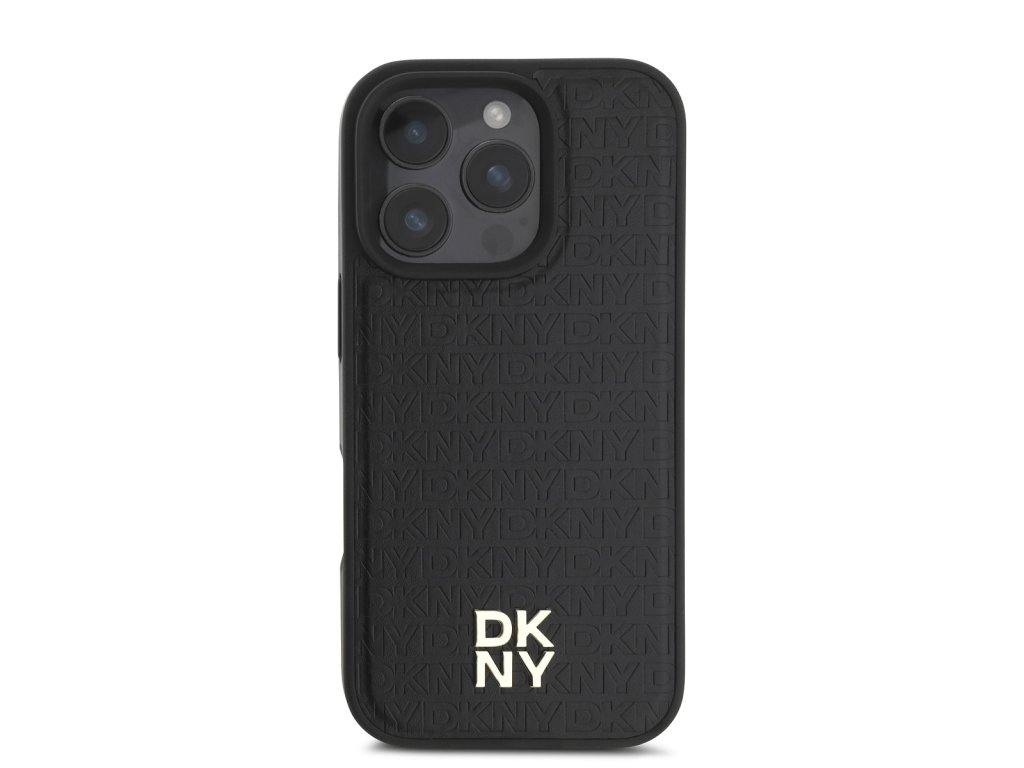 DKNY PU Leather Repeat Pattern Stack Logo MagSafe Zadní Kryt pro iPhone 16 Pro Black