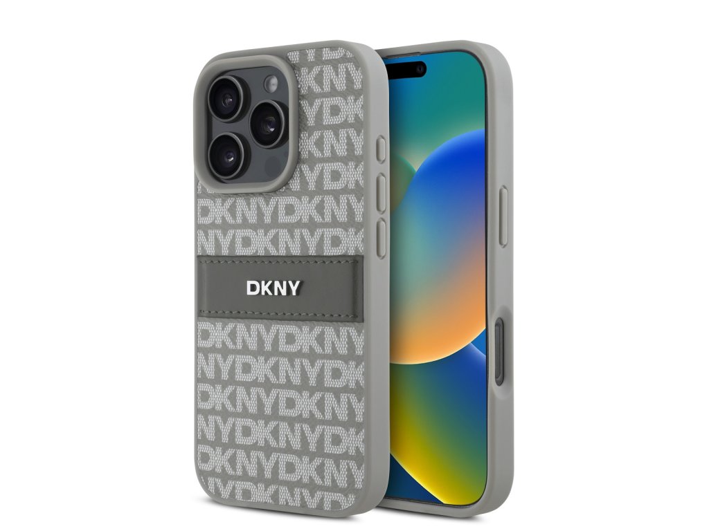 DKNY PU Leather Repeat Pattern Tonal Stripe Zadní Kryt pro iPhone 16 Pro Beige