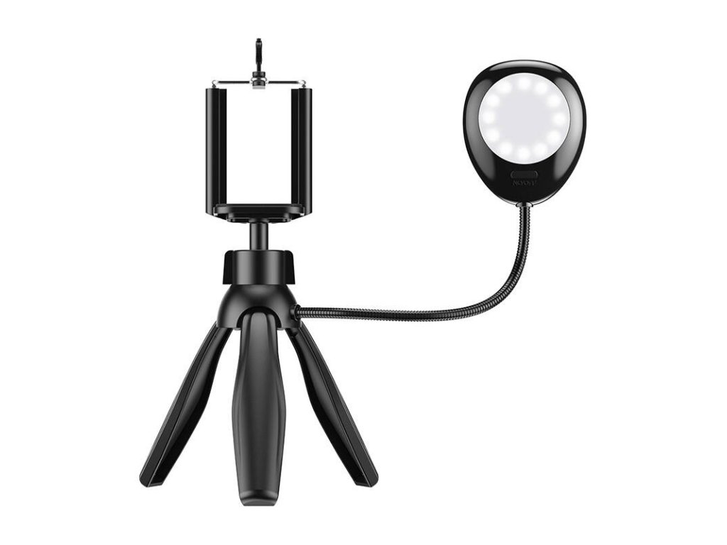 Jednou ze součástí tohoto držáku je LED lampa, která nabízí tři úrovně jasu. Bez ohledu na světelné podmínky tak můžete intenzitu světla přizpůsobit svým potřebám a zajistit optimální podmínky pro tvorbu fotografií nebo živých přenosů. Kromě toho 12 diod LED zaručuje rovnoměrné a výkonné osvětlení, které může výrazně zlepšit kvalitu vaší práce.