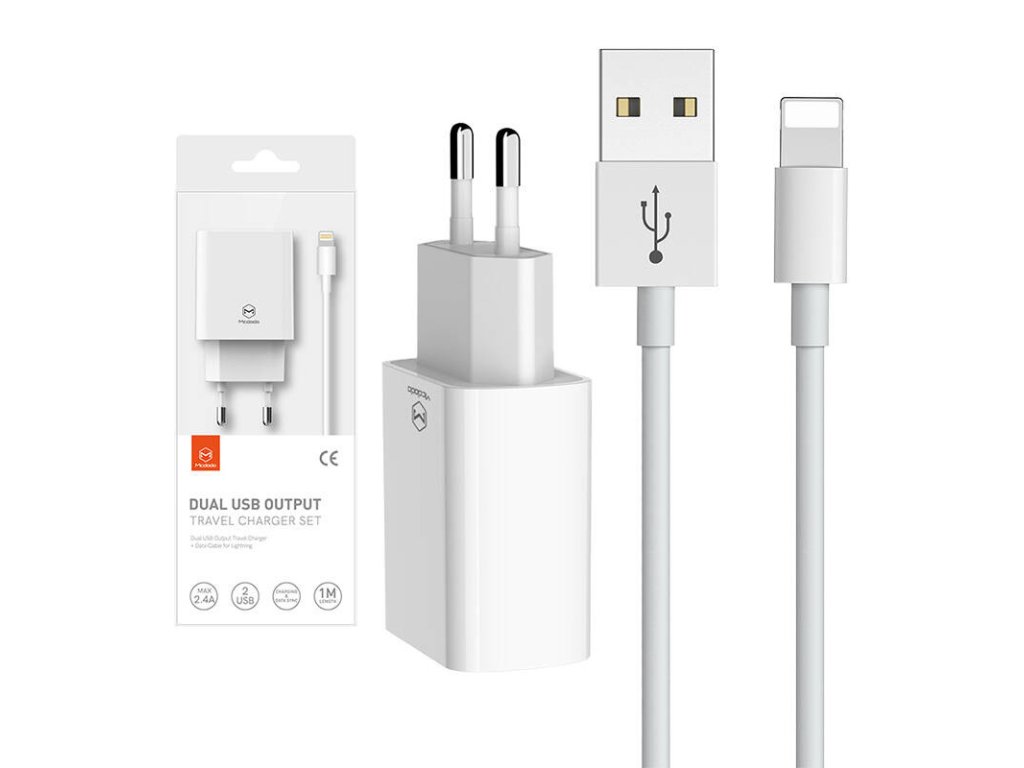 Mcdodo CH-6720 Dual USB Charger (EU) Lightning 1m Travel set (white).