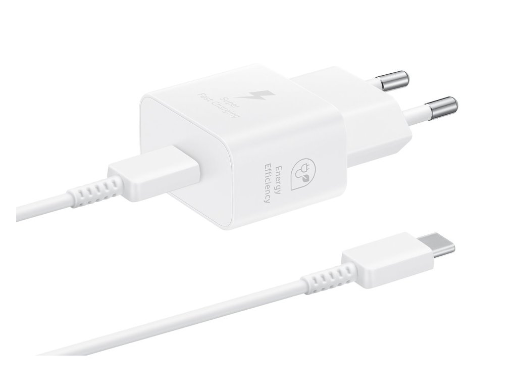 EP-T2510XWE Samsung USB-C 25W Cestovní nabíječka + USB-C Datový Kabel White (Pošk. Balení)
