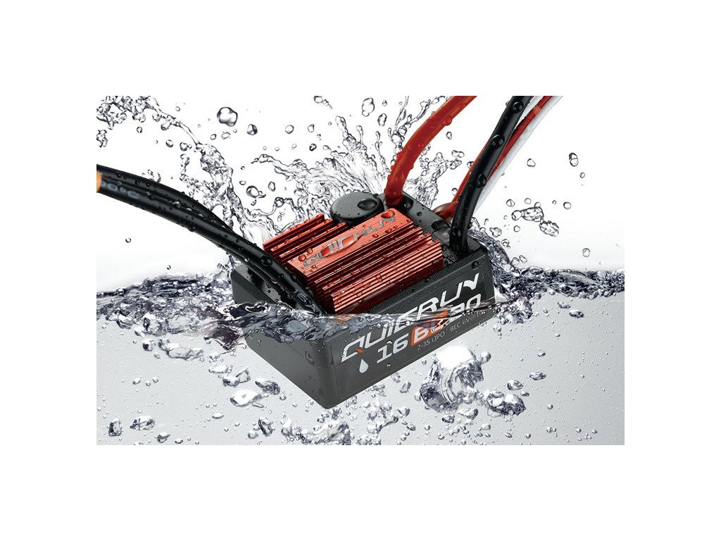 Obousměrný bezsenzorový elektronický regulátor otáček (plyn, brzda, zpátečka), programovatelný (tlačítkem, programovací kartou nebo USB linkem), ochrana proti podvybití baterie, ochrana proti přehřátí a ochrana při ztrátě signálu, voděodolný, vypínač. Regulátor je vhodný pro 1:18 a 1:16 on-road a off-road modely.