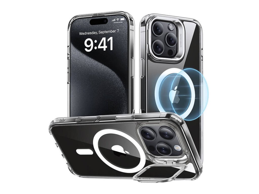 ESR Classic Hybrid (HaloLock) Case with Stand for iPhone 16 Pro (transparent).
