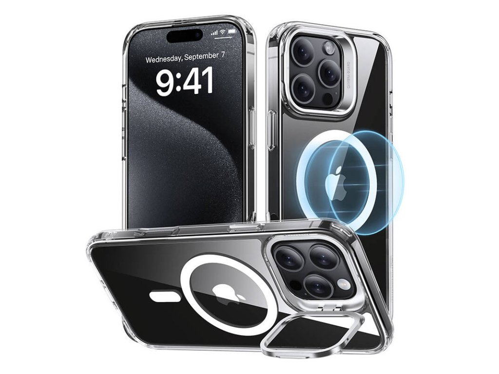 ESR Classic Hybrid (HaloLock) Case with Stand for iPhone 16 Pro Max (transparent).