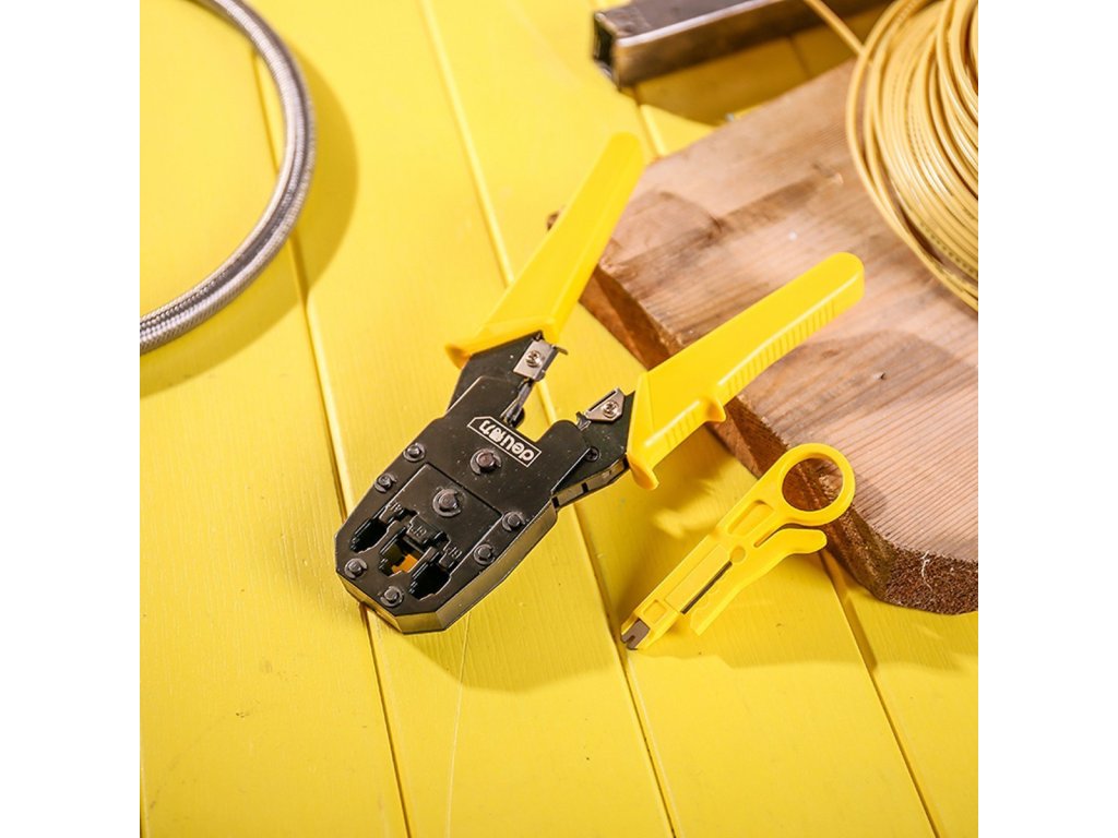 Ethernetové krimpovací kleště 4/6/8P RJ45/RJ14/RJ12/RJ9 Deli Tools EDL2468 (žluté)