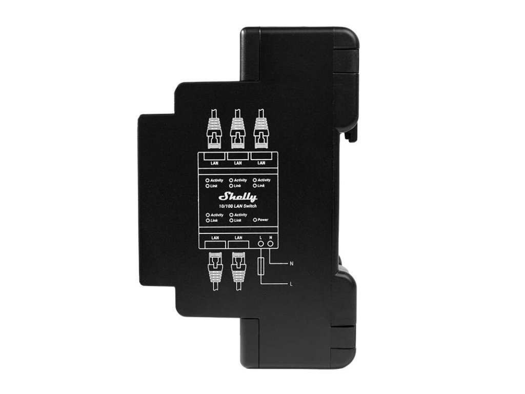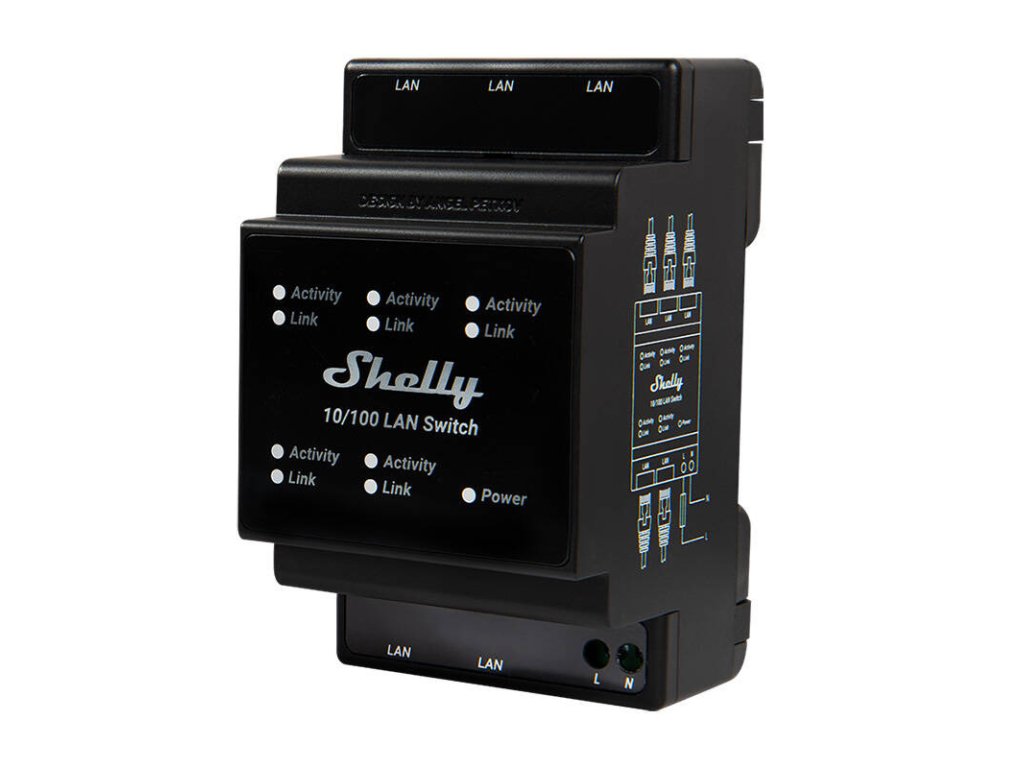 Přepínač Shelly LAN Switch je navržen tak, aby se bez problémů vešel do stávajících konfigurací rozváděčových skříní, a eliminuje tak potřebu složité kabeláže a zároveň nabízí vysokou stabilitu a spolehlivost připojení. Ve spolupráci s řadou zařízení Shelly Pro switch zjednodušuje instalaci a umožňuje zachovat uspořádanou a estetickou konfiguraci síťového systému. Výsledkem je, že i bez předchozího plánování prostoru pro síťová zařízení je možné rychle a efektivně rozšířit infrastrukturu bez nutnosti přepojování kabeláže.