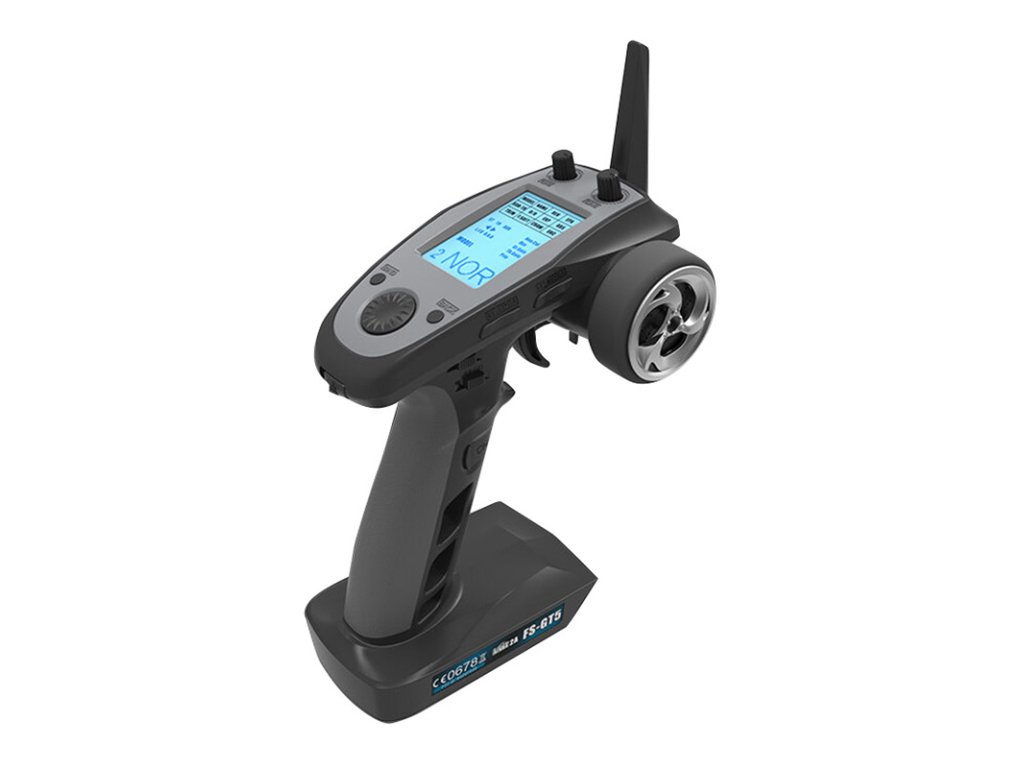A unique feature of the GT5 transmitter is the steering wheel equipped with a bearing, which ensures smooth and precise control. In addition, the foldable antenna allows the transmitter to be conveniently carried and minimizes the risk of damage during transportation.