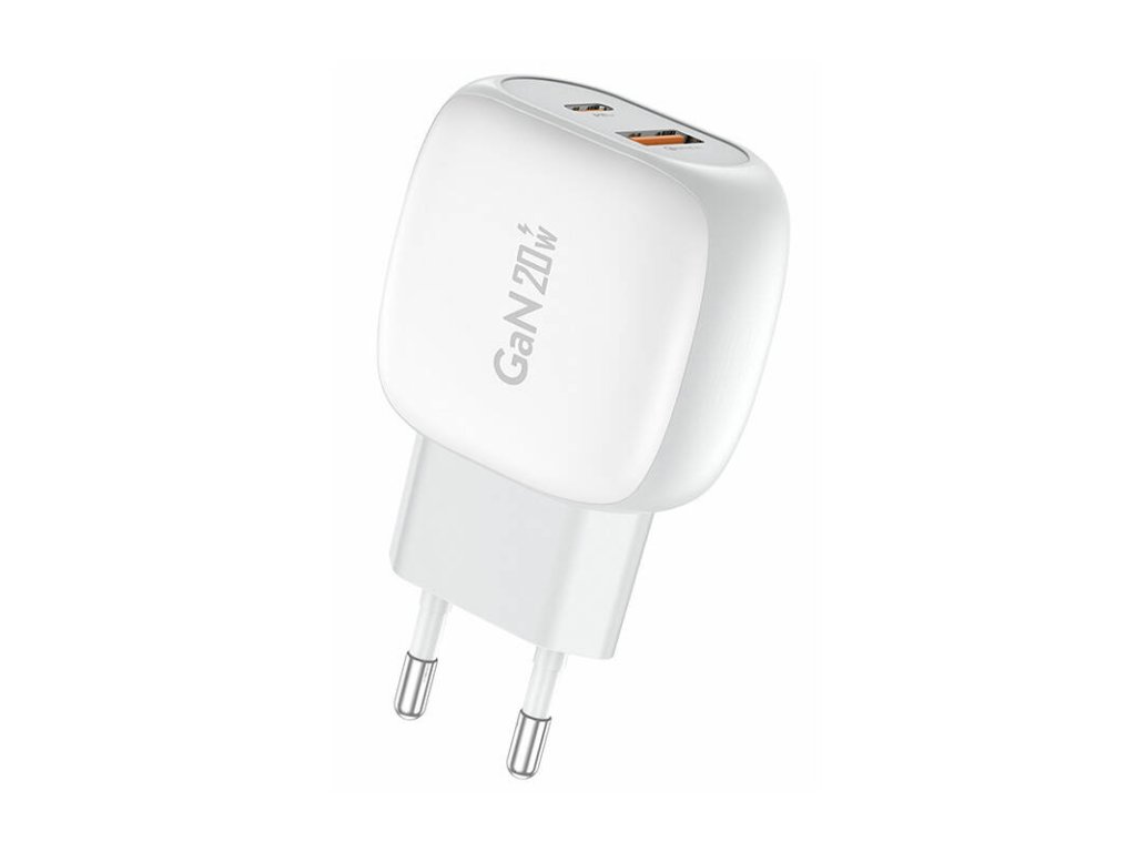 The Foneng EU41 USB-C+USB-A 20W Power Charger + USB-C - Lightning cable is a powerful fast charging device that combines state-of-the-art GaN (gallium nitride) technology with dual USB-C and USB-A ports to charge two devices simultaneously. With support for PD+QC3.0 technology, it provides fast charging of up to 20W, allowing you to charge your phone up to 50% in just 30 minutes. Its wide voltage range of 100-240V makes it ideal for use around the world, and its dual flame-resistant PC+ABS material housing guarantees safety and durability. The ergonomic, rounded design makes the charger comfortable to use, and the rugged construction ensures reliability in daily use. If you are looking for an efficient and safe way to charge your devices, the Foneng EU41 will be an excellent choice.