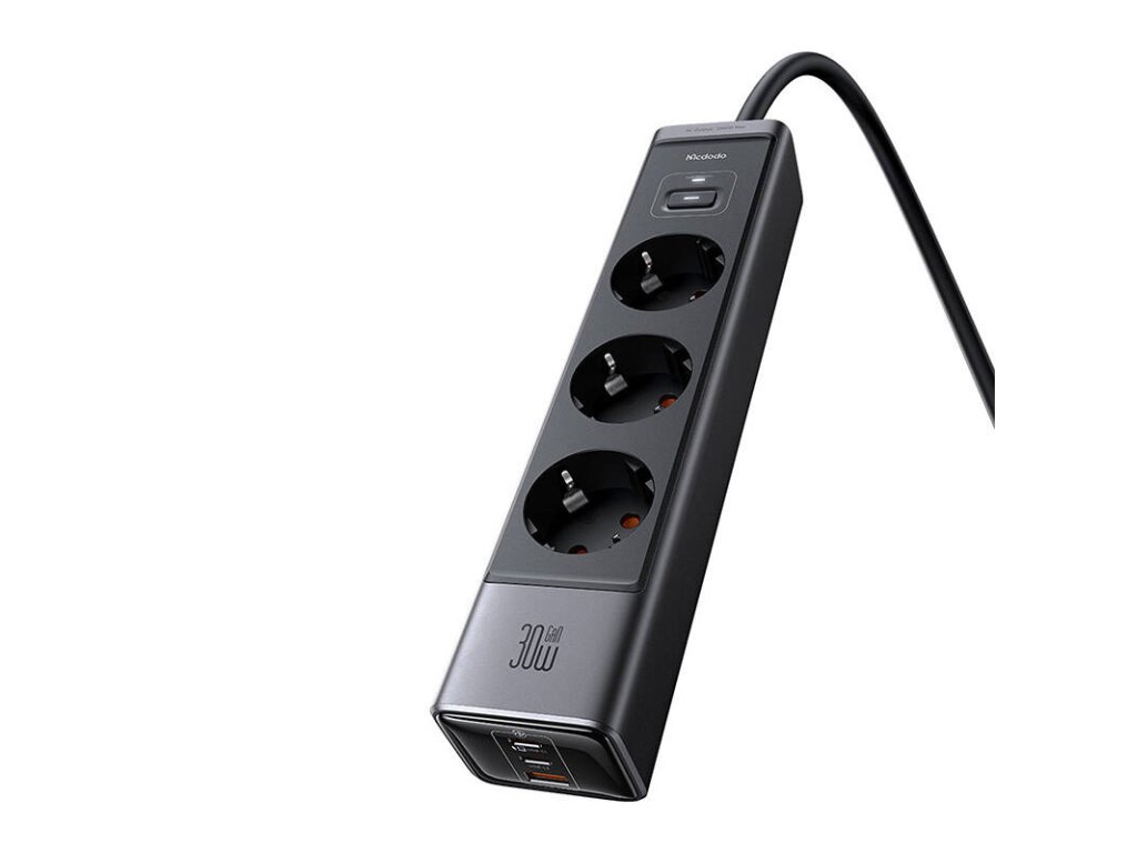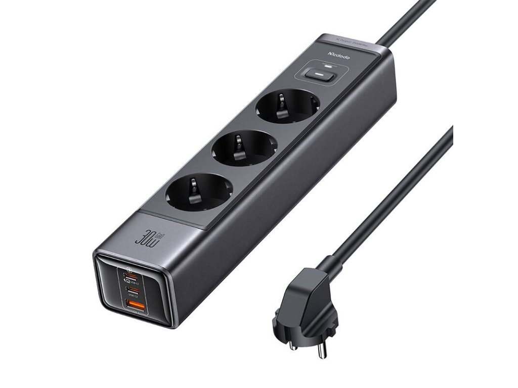 With USB-C and USB-A ports, the Mcdodo strip allows you to quickly charge smartphones, tablets, laptops and other electronic devices. With 30W of power, you can instantly charge your devices while using the other outlets to power other equipment.
